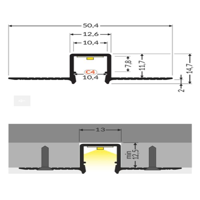 Oprawa do taśmy led HIDE10 C4 profil 3m aluminium surowe, do szpachlowania